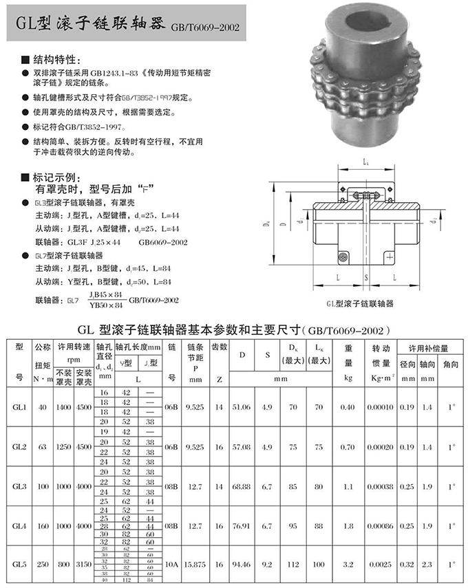 瑞安市寶德隆機械配件有限公司提供GL型滾子鏈聯(lián)軸器具有拆裝方便,快速安裝等特點,廣泛用于連接/固定輪轂孔和零件的軸,例如齒輪,錐齒輪,鏈輪,葉輪,凸輪,皮帶輪和飛輪等軸的聯(lián)結固定,咨詢電話:18906872378