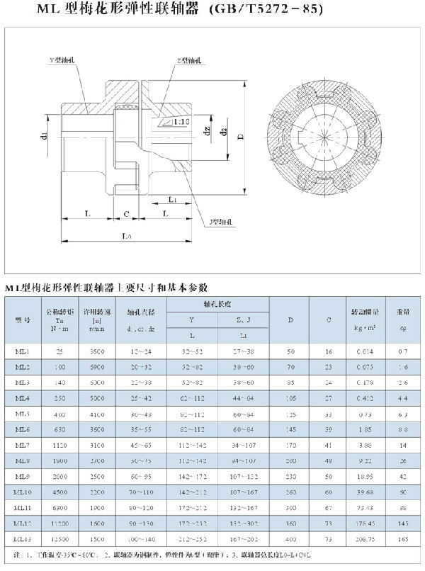 ML1梅花彈性蛇形聯(lián)軸器主要由兩個帶凸齒密切嚙合并承受徑向擠壓以傳遞扭矩,當(dāng)兩軸線有相對偏移時,彈性元件發(fā)生相應(yīng)的彈性變形,起到自動補(bǔ)償作用。 ML1梅花蛇形聯(lián)軸器主要適用于起動頻繁、正反轉(zhuǎn)、中高速、中等扭矩和要求高可靠性的工作場合,工作環(huán)境溫度-35℃~+80℃,傳遞公稱扭矩25~12500Nm,許用轉(zhuǎn)速1500~15300r/min。